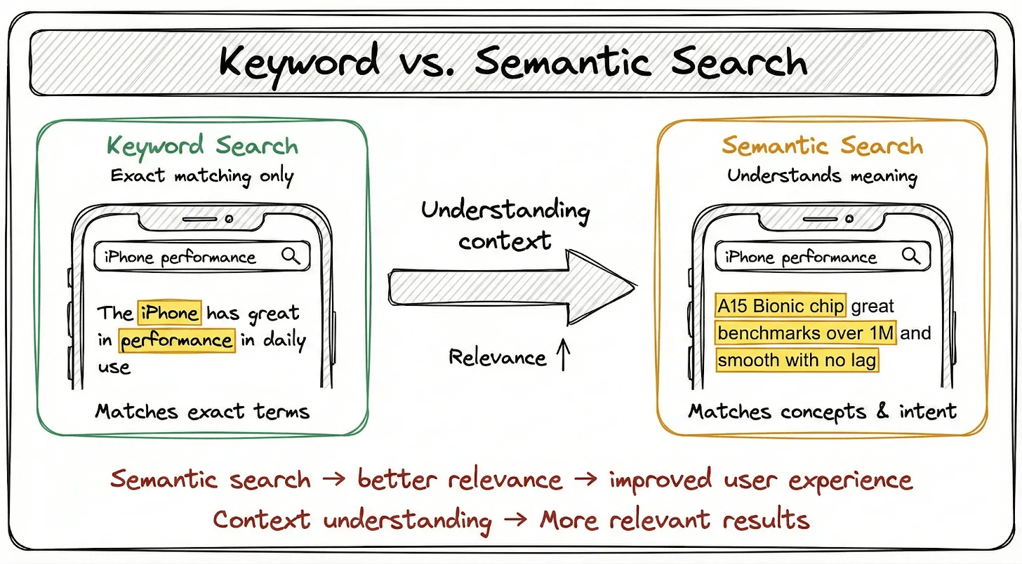 Here’s where keyword matching fails and semantic understanding shines.
